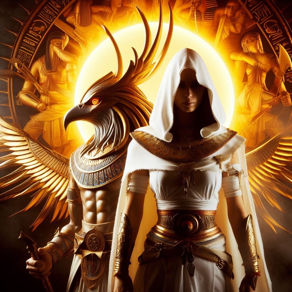 Ра изображался как человек с головой сокола, украшенного солнечным диском, который является источником всей жизни и энергии на Земле. Его свет был воспринимаем как благословение, приносящее тепло, свет и плодородие. Ра правил небесами и землей, обеспечивая баланс и порядок в мире.