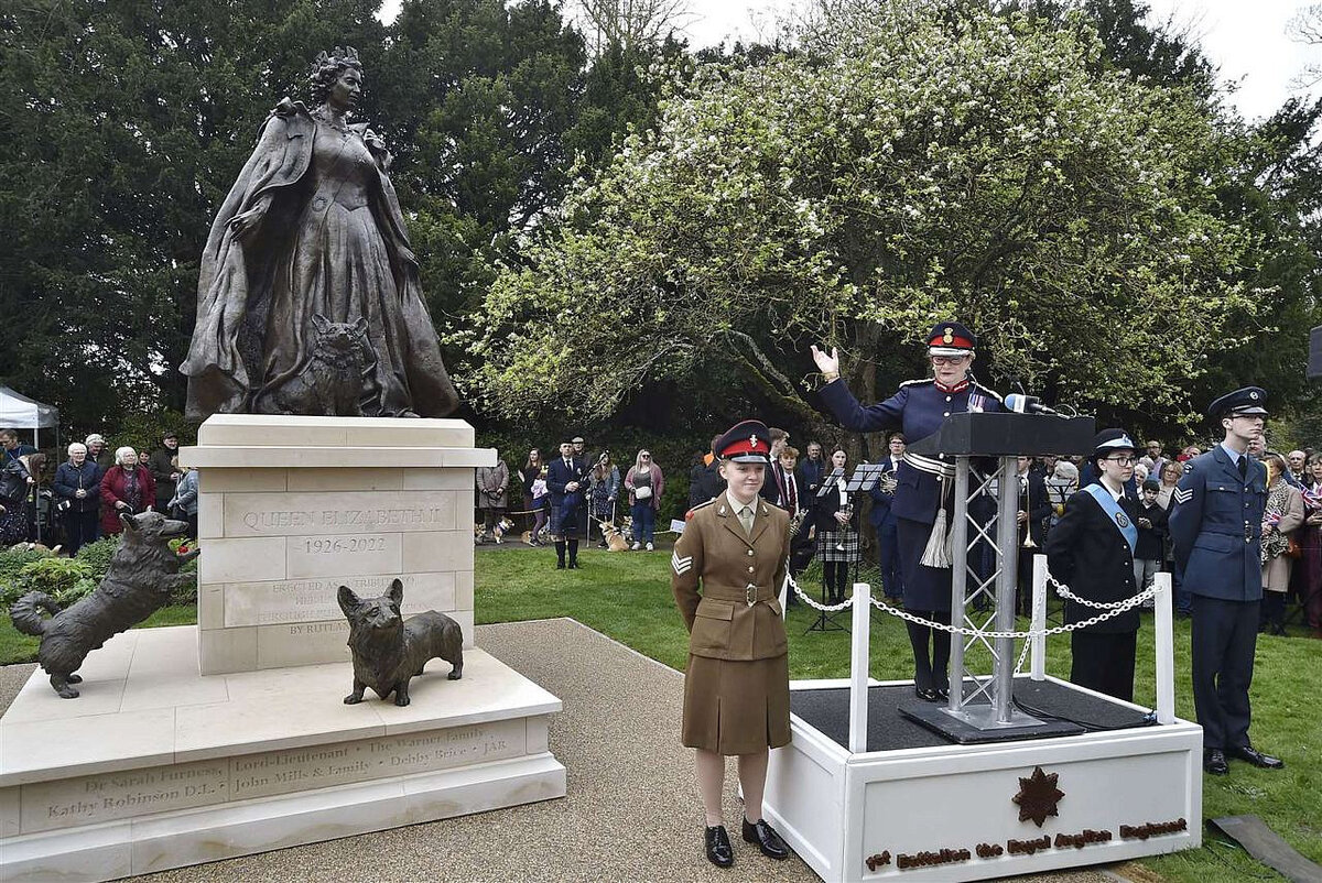 Церемония открытия состоялась в день рождения королевы 21 апреля. Памятник представили публике под лай 50 корги из Лиги вельш-корги.
