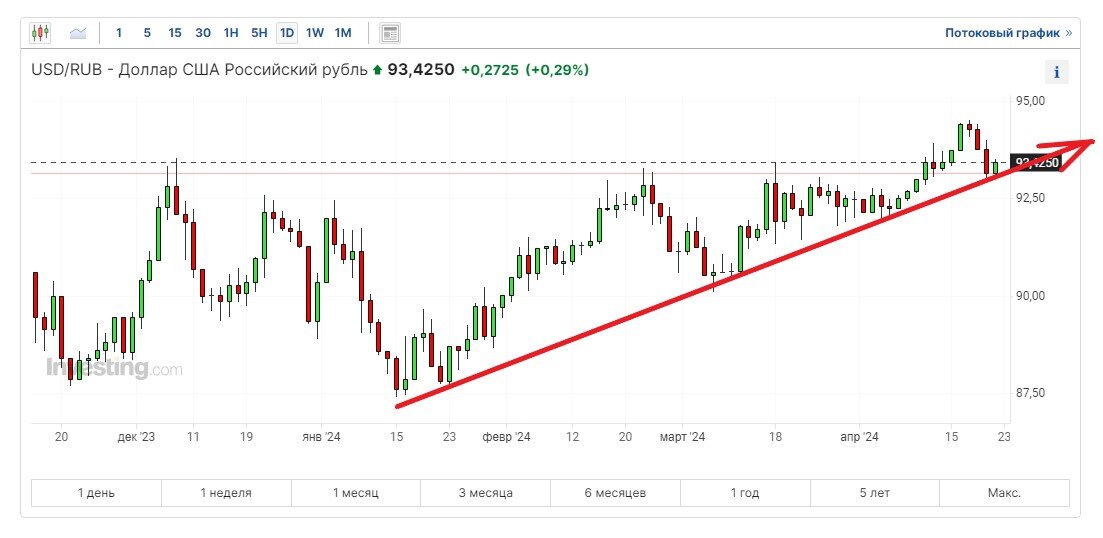 Например, на конец 2023 года я вообще ждал курса доллара 80 рублей, а он оказался 90. То есть, я ошибся в меньшую сторону! Вот мой прогноз: