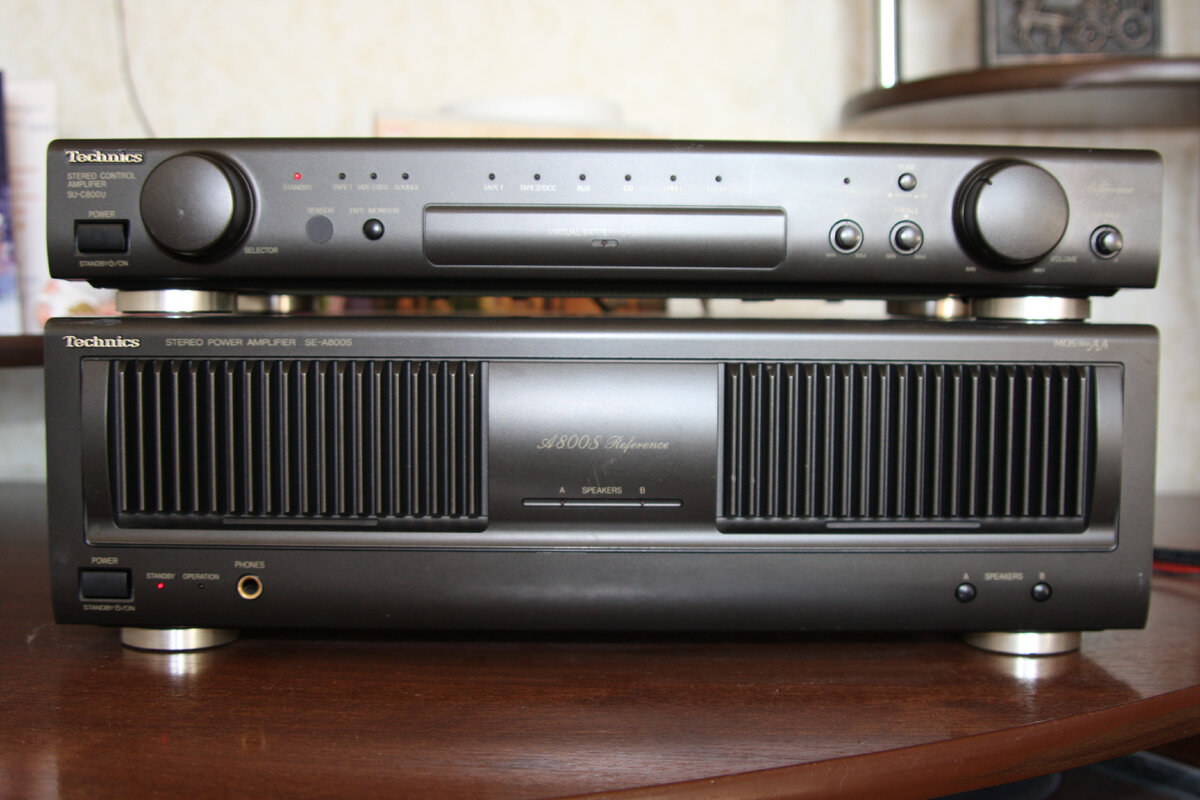 Приветствую всех на моём канале, продолжаем серию мини или не очень статей о аппаратуре, которая ко мне попадала в последнее время. Сегодня поговорим о двухблочном усилителе Technics SE-A800S Reference и его предусилителе SU-C800U. Первый раз данный усилитель я увидел на ВДНХ. Если кто помнит, в те года (начало-конец 90-х) в павильонах выставки была куча разных магазинов с электроникой и не только, некий филиал горбушки. Своим видом он меня поразил, как сейчас помню, приехал домой и рассказывал отцу про него, какой мощный усилок, а спереди у него радиаторы охлаждения, ещё и огромные лампы под ними. Конечно же это не радиаторы охлаждения - просто бутафория. Нет себе я в то время не хотел такой усилитель, тогда хотелось, как минимум стрелочки, а они начинались с 900-го, но в те времена это было абсолютно несбыточной мечтой, я скорее заглядывался на минисистемы Айва и Сони. Попал ко мне по случаю данный комплект, интереса у меня к нему не было, так, ради л