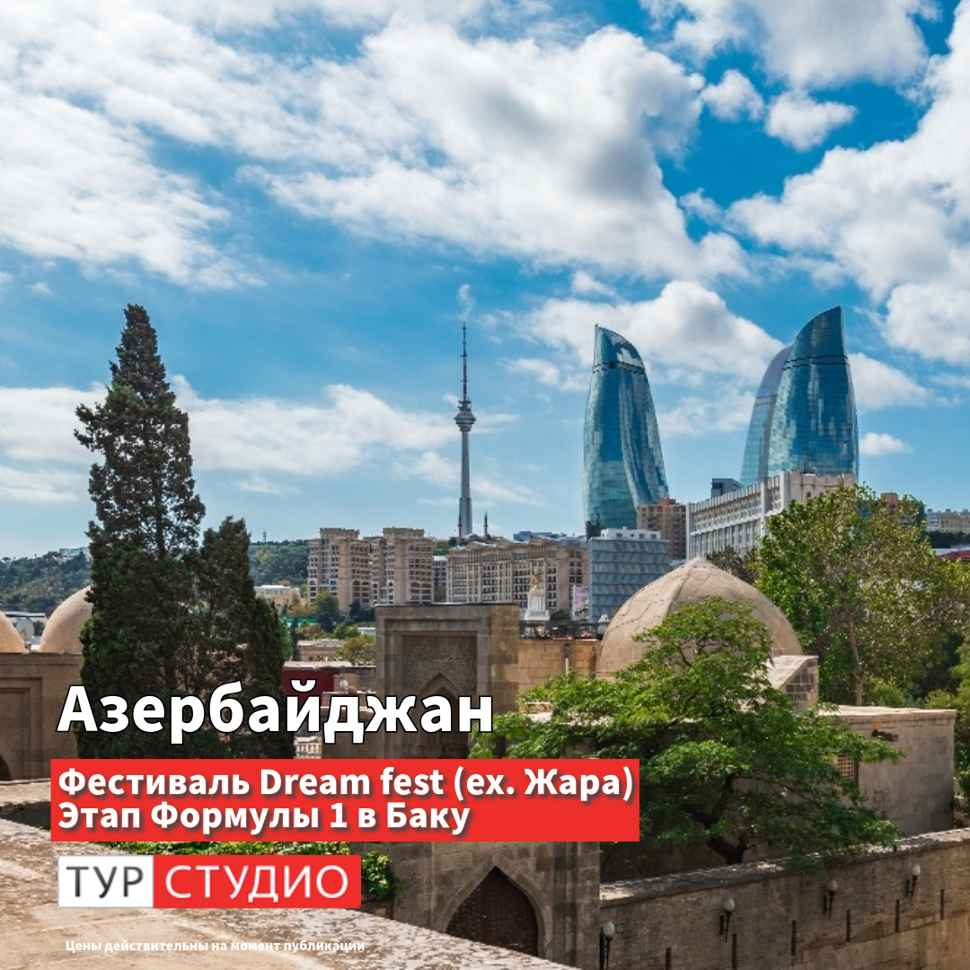 В Азербайджане пройдёт сразу несколько крупных событий, которые нельзя пропустить. Они подарят вам незабываемые впечатления и оставят яркие воспоминания. Жаркая погода, красивый загар и стильные люди — вот какое настроение задают эти мероприятия! Фестиваль Dream fest (ex. Жара) Грандиозный музыкальный опен-эйр с 23 по 28 июля в премиальном курортном комплексе Sea Breeze Resort. На побережье Каспийского моря будут выступать популярные музыканты из стран СНГ, Турции, Великобритании, Европы и Канады. 📌Гости могут остановиться как в самом комплексе, так и в отелях Баку. Dream fest от 425$ на человека в DBL Этап Формулы 1 в Баку Мировое шоу для любителей скорости и ярких моментов пройдет с 13 по 15 сентября. Формула 1 от 727$ на человека в DBL Включено: проживание в отеле на завтраках от 3х ночей, мед страховка, авиаперелет регулярным рейсом. Билеты и трансферы на мероприятия бронируем отдельно. Не упустите возможность побывать в Азербайджане и окунуться в атмосферу настоящего праздника!