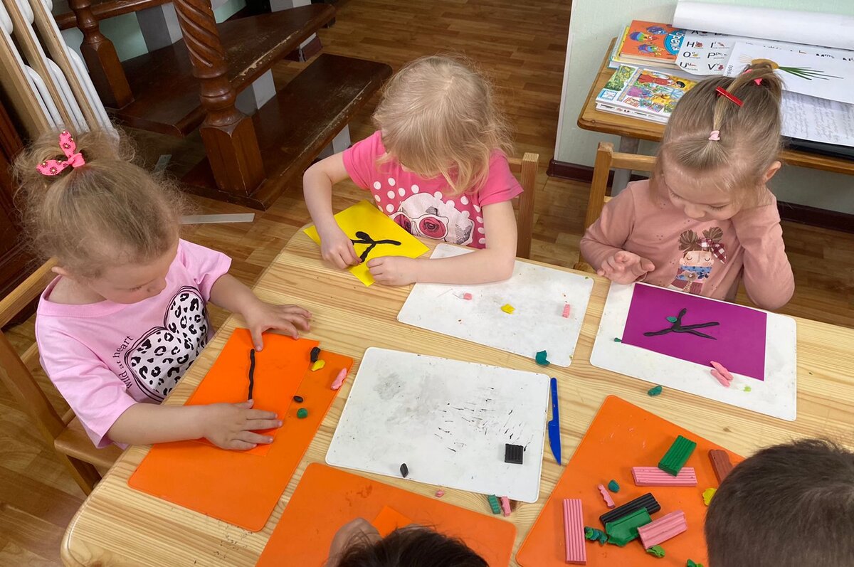 Ксюша была в детском саду, из занятий по понедельникам у них лепка, физкультура и английский.