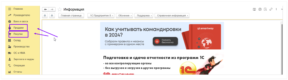 Дебиторская и кредиторская задолженность между контрагентами бывает и взаимной. В частности, фирма «А» поставила товар компании «Б», а последняя оказала услуги. В этом случае речь идет о встречных обязательствах. Расчеты с контрагентами ведутся с применением пунктов меню «Покупки» и «Продажи».