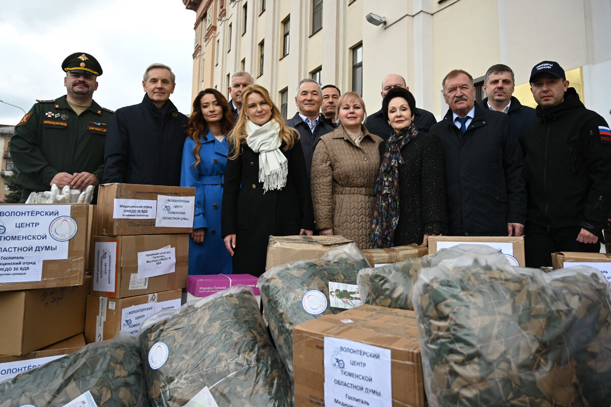 Председатель Тюменской областной думы Фуат Сайфитдинов принял участие в отправке гуманитарного груза в зону специальной военной операции. Посылки собрали волонтеры Тюменской областной думы совместно со специалистами Счетной палаты Тюменской области. В отправке участвовали депутаты облдумы, а также почётные гости – сенатор Российской Федерации от Луганской Народной Республики Дарья Лантратова и председатель Совета Краснодонского муниципального округа ЛНР Владимир Шавлай. «Активисты волонтёрского центра регионального парламента делают большое и важное дело. К общественной работе они подошли творчески и предельно ответственно. Каждый вносит свой вклад в помощь фронту. Эта работа будет обязательно продолжена и Победа будет за нами!» - подчеркнул Фуат Сайфитдинов. Напомним, волонтерский центр Тюменской областной думы «От сердца к сердцу» создан в начале 2024 года по предложению председателя парламента Фуата Сайфитдинова. Депутаты облдумы, сотрудники аппарата и Счетной палаты плетут маскиро