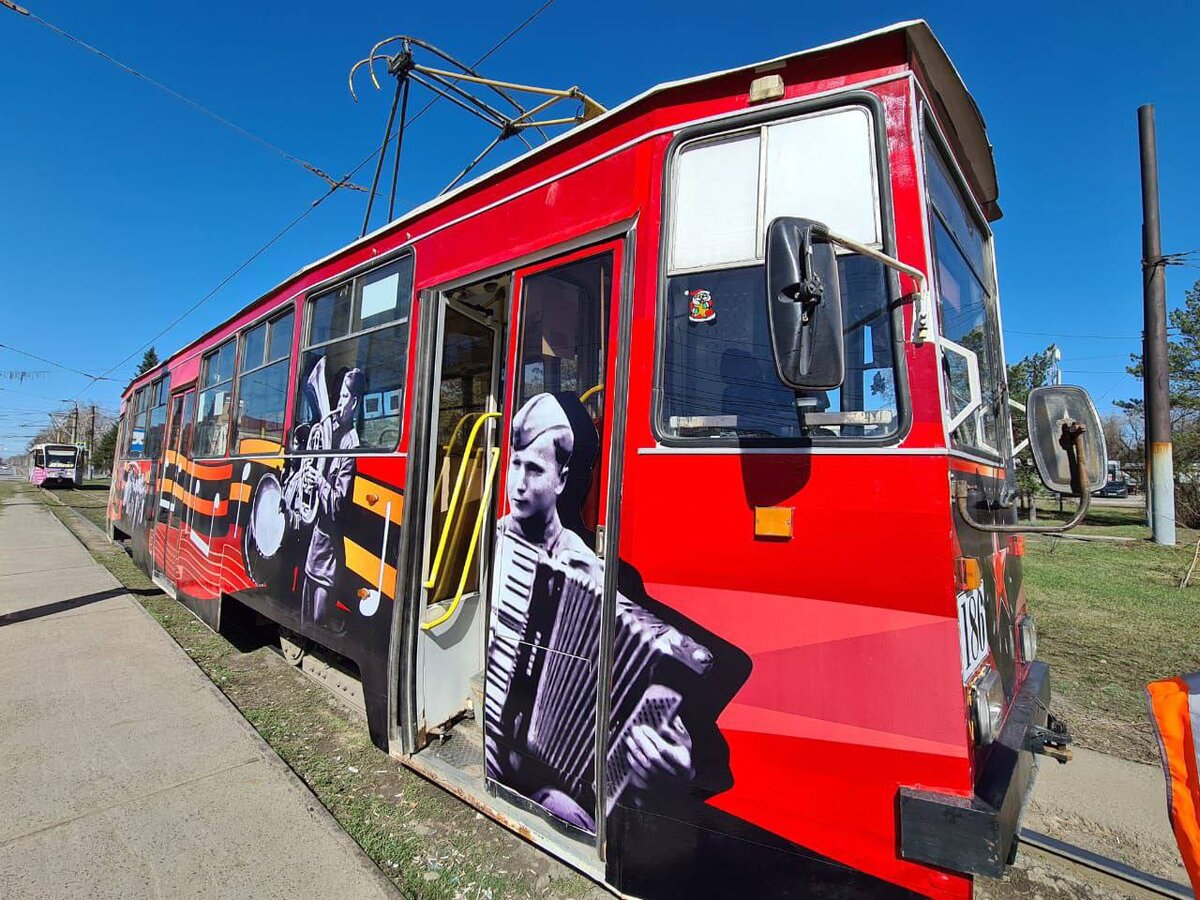 Мэр города Сергей Шелест пригласил омичей спеть песни в «Трамвае Победы». Транспорт начал курсировать уже с сегодняшнего дня. Мэр Омска Сергей Шелест показал, как будет выглядеть «Трамвай Победы», который был подготовлен к празднованию Дня Победы. Омичи смогут встретить такой транспорт уже с сегодняшнего дня. Как рассказал Шелест, в основе оформления оказались изображения георгиевской ленты, ордена Красной Звезды, нот и нотного стана, а также архивные фото. Сегодня необычный вагон курсирует по маршруту № 1, дальше он будет работать и на других маршрутах. А с 6 по 9 мая трамвай поедет по маршруту № 4 в музыкальном сопровождении. – Приглашаю вас стать пассажирами «Трамвая Победы» и вместе с омскими артистами спеть любимые песни военных лет, – добавил мэр. Отметим, что петь в караоке жители города смогут с 10 до 17 часов. info@omskinform.ru