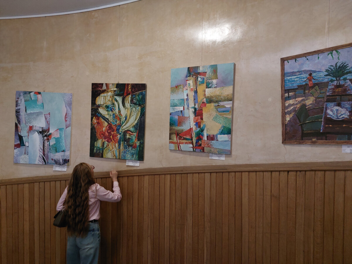 Первый этаж экспозиции – как анонс и приглашение следовать дальше. Поэтому здесь собраны реалистичные натюрморты и пейзажи музейного уровня – полотна Галины Суховой – «Фотография на память», «Утренние розы» и шелест прибрежной волны и отраженный свет спускающего за горный хребет солнца.