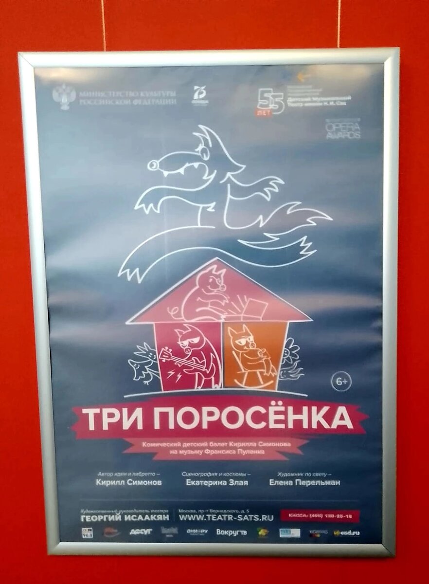 Ваш ребенок любит балет? И уже посмотрел классические постановки? Тогда самое время сходить в Московский государственный академический детский музыкальный театр имени Н.И. Сац на авторский балет Кирилла Симонова «Три поросенка» на музыку Франсиса Пуленка. Это иронический рассказ о трех Поросятах, на которых пытался напасть Волк. Хоть сюжет сказки остается прежним, но Поросята будут до неузнаваемости разные. Появились и новые персонажи, которые украсили сюжет. Нас с ребятами впечатлили гламурные главные герои, смешные растения, синий гриб и зебра с пистолетом. Вашему ребенку понравится также интересное цветовое оформление спектакля, замечательная хореография, сюжетная выдумка и, конечно, прекрасная игра актеров. А воздушная, весёлая музыка балета запомнится вашим детям надолго. До новых встреч в мире прекрасного, дорогие театралы!