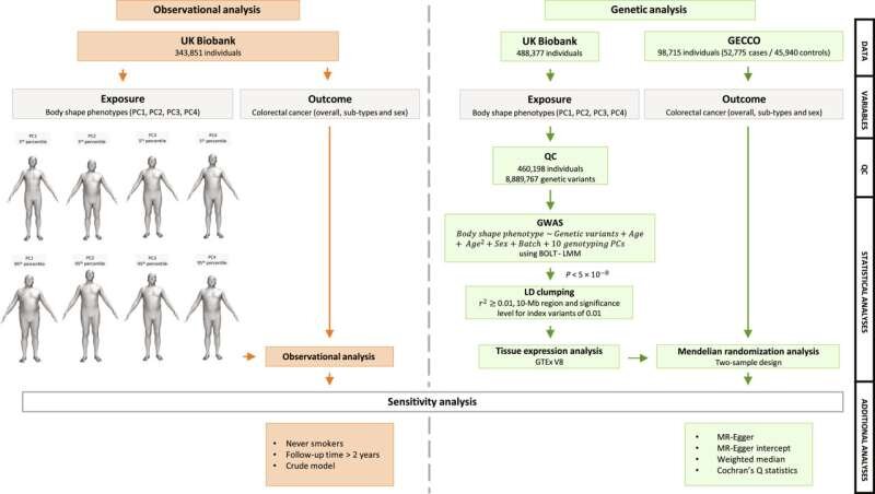 Большая международная группа медицинских исследователей обнаружила, что люди с двумя типами телосложения более склонны к развитию колоректального рака, чем люди с другими типами телосложения. В своем исследовании, опубликованном в научном журнале Science Advances, ученые оценили форму тела и генетические тенденции тысяч людей на предмет риска развития колоректального рака. Колоректальный рак развивается в толстой или прямой кишке. Предыдущие исследования показали, что колоректальный рак является второй по значимости причиной смертности от рака в США: ежегодно диагностируется около 150 000 случаев. Риск заболевания в течение жизни составляет 1 из 23 для мужчин и 1 из 25 для женщин, хотя на вероятность развития заболевания играют роль и другие факторы, в первую очередь выбор образа жизни. В 2016 году другая группа исследователей обнаружила доказательства связи ожирения в целом и центрального ожирения у высоких людей с более высокой вероятностью развития колоректального рака. В рамках это