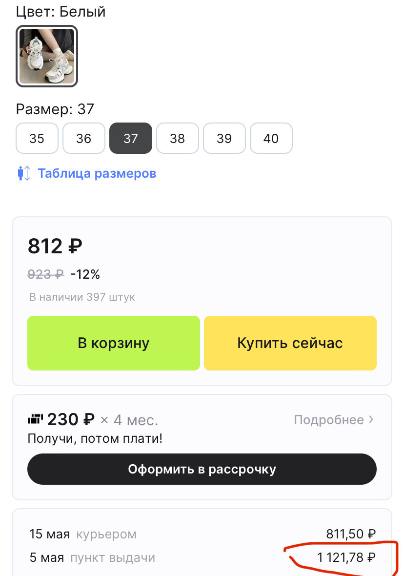 Я несколько лет ничего не заказывала на AliExpress. А недавно муж попросил заказать всякую мелочовку для машины. Стала искать и обратила внимание, что многие продавцы берут деньги за доставку. Иногда сумма доставки превышают стоимость самой вещи. Вот, например ⬇️ Стоимость кроссовок 812 рублей, а стоимость доставки в пункт выдачи - 1121,78 рублей Тогда у меня закралась мысль посмотреть эти товары на Wildberries и OZON. И здорово, что я это сделала... Всё получилось дешевле на популярных маркетплейсах, плюс быстрая доставка и на почту бежать не нужно. И стоять в очереди тоже, на почте без очередей у нас не бывает… Автовизитку заказала за 96 рублей, на Ali она же - 133,44 рублей с доставкой. Деньги конечно небольшие, но это дороже почти на 38 % И на Wildberries её доставили через день…. А с защитой на пороги для нашего любимого Changan CS75 plus экономия оказалась гораздо больше. На OZON я заказала их за 439 рублей, а на Ali получалось - 803,4 рублей с доставкой. Единственное, чт