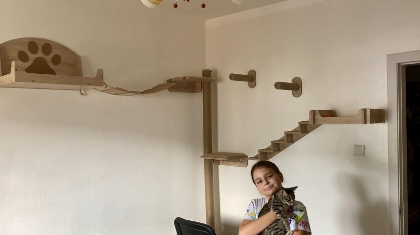 Дорогой дневник, Ты даже себе не представляешь, что жизнь мне приготовила дальше. Конечно, это можно назвать и испытанием для меня, потому что оно потребовало проявления силы духа с полной концентрации внимания и физических сил. Но по факту это был удивительно позитивный момент в моей жизни, потому что в ней появился самый настоящий парк кошачьих развлечений. Да-да, ты не ослышался (и не овИделся… если есть такое слово, означающее, что ты всё правильно увидел), папа с Аней через полтора месяца после моего переезда к ним установили наикрутейший настенный комплекс. Скажу откровенно, благодаря нему стены в зале стали выглядеть куда симпатичней. А если учитывать практичную составляющую, то решение установить комплекс стало одним из самым эффективных (да еще и эффектных) в нашей семье за всю историю моих наблюдений. Это как современное искусство, только вместо картин – полочки, лежаночки, мостик, лесенка и столбик-когтеточка. В первые дни я подозрительно поглядывала на эту конструкцию. “Что
