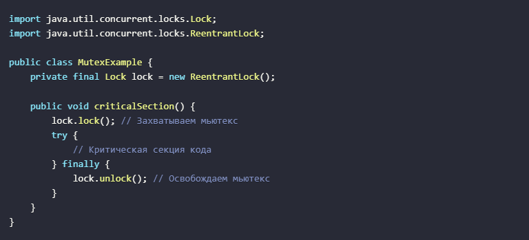 В многопоточной программировании на Java, синхронизация потоков является ключевым аспектом, обеспечивающим корректное выполнение задач, которые требуют доступа к общим ресурсам. В этой статье мы рассмотрим три основных механизма синхронизации: мьютексы, мониторы и семафоры. Мьютексы Мьютекс (Mutex) — это специальный объект, который обеспечивает взаимное исключение при доступе к общим ресурсам. В Java, мьютексы реализуются через интерфейс java.util.concurrent.locks.Lock и его реализации, такие как ReentrantLock. Мьютексы позволяют явно управлять блокировкой и разблокировкой ресурсов, что дает больше контроля над процессом синхронизации. Пример использования мьютекса: Мониторы Мониторы — это более высокоуровневый механизм синхронизации, который используется для обеспечения взаимного исключения и координации между потоками. В Java, мониторы реализуются через ключевые слова synchronized и методы wait(), notify(), и notifyAll(). Эти методы позволяют потоку ожидать (wait) на объекте, пока др