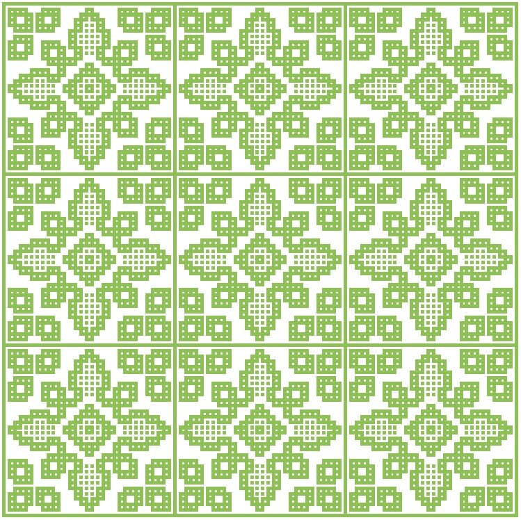 Схему с новым узором для мотива в мозаичной технике вязания крючком составила с одним большим центральным орнаментом, а уголочки заполнила элементами узора этого орнамента, так чтобы при соединении мотивов получился красивый рисунок. На фотографии ниже показан фрагмент из девяти мотивов с рамочкой для наглядности. Здесь, я сделала такой же фрагмент только без рамочки. Обычно, узоры мне больше нравятся с рамочкой, но в этом случае без рамочки рисунок выглядит намного эффектней и больше подходит для прямого мозаичного вязания по лицевой стороне с отрывом нити в каждом ряду. Схема для мотива у меня получилась на 31 ряд вместе с рамочкой, узор составлен в «вафельной» технике, а узор - в «гобеленовой» технике мозаичного вязания крючком. Сама не знаю почему, но именно такое сочетание техник мне нравится больше всего. Но тем и хорошо мозаичное вязание, что любую схему можно подправить по своему усмотрению. Схему полностью в «вафельной» технике я всё-таки сделала, получилось тоже неплохо. Усло