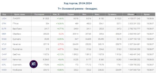 🔥Рост на низких оборотах. Итоги 29 апреля на Московкой бирже