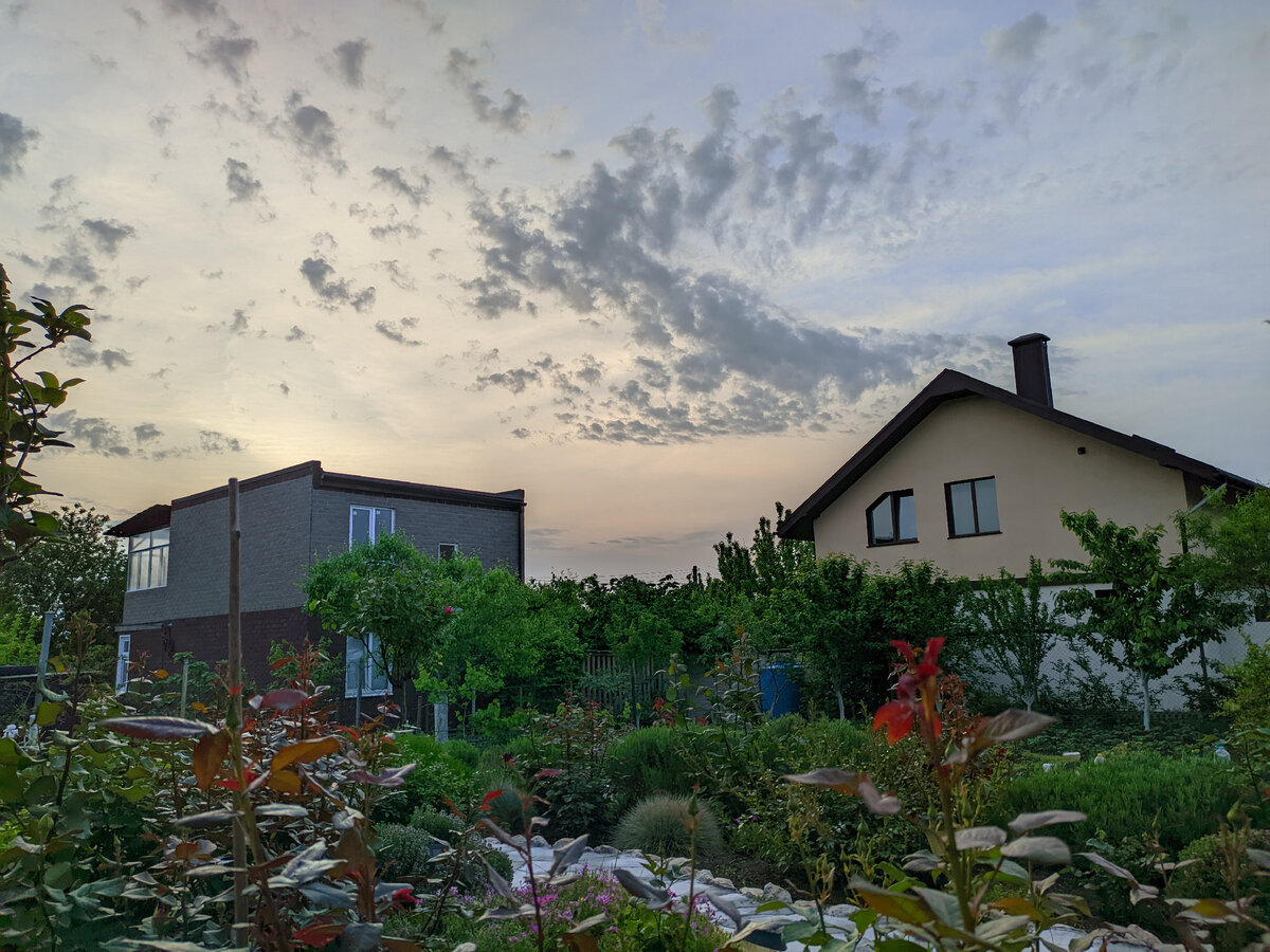 Проснулся около шести утра, толпа хвостов шумела и возмущалась, требовали срочно выпустить их на свободу, по делам и так, получить глоток свежего утреннего крымского воздуха. Встал, да как-то совсем бодренько и вышел с ними прогуляться. Уже вовсю светало. В воздухе ощущался стойкий запах утренней росы, свежо, но не холодно. Небо призывало, - дружище, сфоткай меня и покажи всем своим. Сфоткал. Засмотрелся, потом вспомнил, еще же утром, надо выспаться. И ушел спать. Поднимаюсь в гостиную, там недоуменный взгляд сонной Дымки, мол, хватит тут блыкаться, спать мешаешь. Извинился, аккуратно заполз в постель и заснул. Хотя нет, еще минут десять успел поиграть на смартфоне, а вот уже потом заснул. Проснулся вновь уже в девять утра, Светлана как всегда топталась на кухне, готовила завтрак. На улице по прогнозу намечался дождь и потому погода была пасмурная, но теплая. Вчера на рынок ездили Светлана с братом, а сегодня всё наоборот, я с братом Светланы отправился на рынок, потому что у Светланы