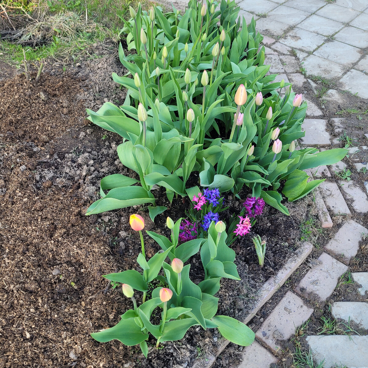 Ну, дождались мы теплой, солнечной погоды. Природа ожила и мы вместе с ней. Тюльпаны только готовятся к полноценному цветению. Ранних сортов у меня нет. В основном все среднецветущие класса Триумф. Очень хотела на осень заказать новые сорта тюльпанов... Но вот такая информация на сайте ( магазин bufl.ru) Похоже свои размножать буду...🤭 Пиончик появился, осенью пересадила на солнечное место и ему явно это понравилось. Изначально сделала ошибку - был посажен под ель... Розы пока активного роста не показывают, но рано еще, почва не прогрелась. Решила ускорить процесс, сегодня приехал заказ из Русрозы - мульча, грунт и навозец..🥴 Все розарии укрыты мульчей ( опилки+ перепревший конский навоз), солнышко будет нагревать мульчу и восстановление роз пойдет быстрее. В общем, все мероприятия по восстановлению роз решила не проводить - НЕ ХОЧУ🙃. Решила так - либо сами давайте, либо заменю на новые. Будем отдыхать, загорать и жарить шашлыки😄 Всем хорошего настроения и отличного вр