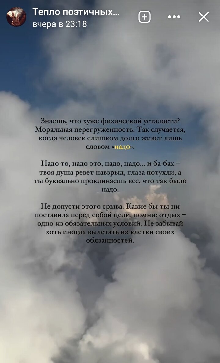 Самые лучшие стихотворения те, в которых ты видишь себя... Случайно нашла вот этот поэтический канал и поделюсь с вами теми тем, что особенно тронуло меня... 💔 Пришло время себя беречь, Принимать эту жизнь спокойно. Если слово, как острый меч, Промолчать и уйти достойно. На нападки не отвечать И советов чужих не слушать, Ничего никогда не ждать, Не впускать первых встречных в душу. Пришло время себя познать, Заглянуть глубоко-глубоко Не кому-то, себе сказать: "Что случалось, не воля рока. Это строила я сама И сама же легко ломала. Отдавая порой задарма То, о чем всей душой мечтала. Для других жила. Для других. Говорила себе, робея: "Сколько лет там еще впереди, Для себя поживу, успею..." Вот полжизни моей прошло, Пролетели года, как птицы. Осознание вдруг пришло: Детство, юность не повторится... А вот зрелость в моих руках. За нее я теперь в ответе. Хватит жить мне "на тормозах", Только раз мы живем на свете! Вектор мыслей своих изменить И открыть