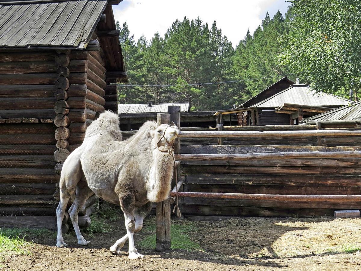В Верхней Берёзовке, "скансене" на окраине Улан-Удэ, самый востребованный сектор - увы, зоопарк. Белый верблюд пасётся на задворках (в кои то веки упоминают это слово по назначению!) богатой бурятской усадьбы, входящей в Прибайкальский комплекс.