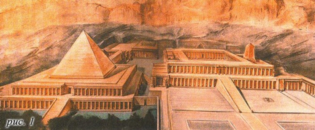 Если выделять основные его черты, то стоит упомянуть следующие: очень четкая осевая композиция, чередование открытых пространств и закрытых, увеличение масштабов залов – они становятся просторнее, сочетание гипостильного (многоколонного) зала и перистильного двора (колонны по периметру). Появление оси задает новую, удивительно четкую пространственную ориентацию. Кроме того, если в архитектуре Древнего царства важна была вертикаль (поэтому дорога через комплекс шла под наклоном), здесь важно гармоничное сочетание вертикали и горизонтали, тогда как в Новом царстве окончательно победит горизонталь (идея шествия человека к богу).