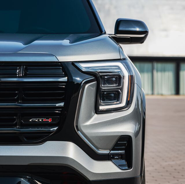Самый компактный и по совместительству самый дешевый кроссовер GMC под названием Terrain готовится к полной смене поколений в 2025 году. Американский производитель решил существенно освежить облик GMC Terrain 2025, придав ей более мускулистый и мужественный вид в духе флагманского “Юкона”. Первый официальный тизер уже продемонстрировал некоторые черты нового дизайна Terrain. Судя по опубликованному изображению, в передней части кузова Terrain следующей генерации будут использованы более четкие и грубые формы. Фирменная решетка радиатора обретет строгую прямоугольную концепцию, а головная оптика станет угловатой, визуально роднящей компактный кроссовер с крупными моделями GMC. Особенно эффектно эта новая стилистика будет смотреться на версии AT4 с ее подчеркнуто брутальной внешностью. Массивная глянцевая окантовка фар сочетается с агрессивными вставками на бампере трапециевидной формы. Дизайн экстерьера обещает стать более лаконичным и строгим. Пока производитель держит в секрете осталь