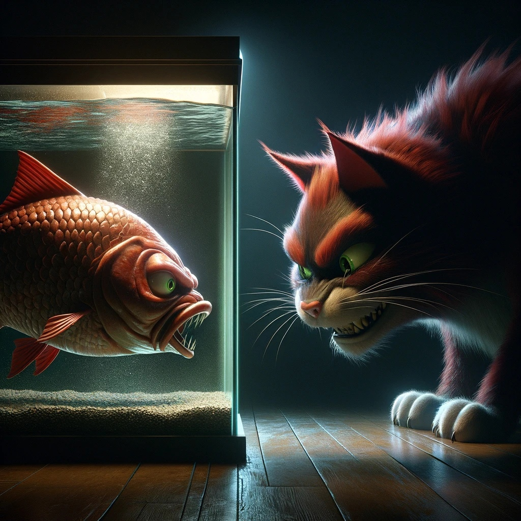 Рыба храпела так, что стенки аквариума выгибались, а Катерина ворочалась на кровати, пытаясь заснуть. Кот вспрыгнул на подоконник и попытался открыть лапой створку окна. Там, на улице - доступные кошечки и свобода. Дома - стрёмная рыба и расстроенная хозяйка. Наверно, он нужен ей здесь. Кошечки подождут.