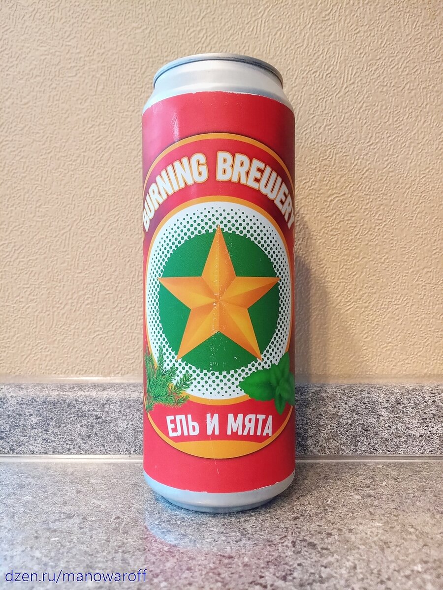 Который, как знают все, кто родился в СССР, лечит от всех болезней (возможно даже от срамных, так сказать). Бальзам, правда, у нас будет в виде пива "Ель и Мята" от питерских "суповаров" Burning Brewery. Однако на сей раз они сварили не суп, а кисляк. Сорт достаточно новый - дебютировал в феврале сего года. У меня банка датирована первым апреля, а вскрыл я ее 22 числа. Т.е. пиву было ровно три недели. Срок годности составляет 365 суток при хранении в холодильнике. Описание лаконичное и с хромающей пунктуацией: Саур эль с ароматом вьетнамского бальзама “Звездочка” ели и перечной мяты. В составе присутствует плодово-ягодное сырье (пюре яблока), сироп глюкозный (Ель, Мята), сорбат калия и бензоат натрия. ТТХ: Пиво зеленого оттенка, мутное, непрозрачное. Присутствует декоративная пенка. Пахнет хвоей и мятой - это сочетание, действительно, несколько напоминает "Звездочку". Вкус сладковатый, с небольшой кислинкой, нотками хвои и яркой мятой, хорошо охлаждающей пищевод. Послевкусие мятное, н