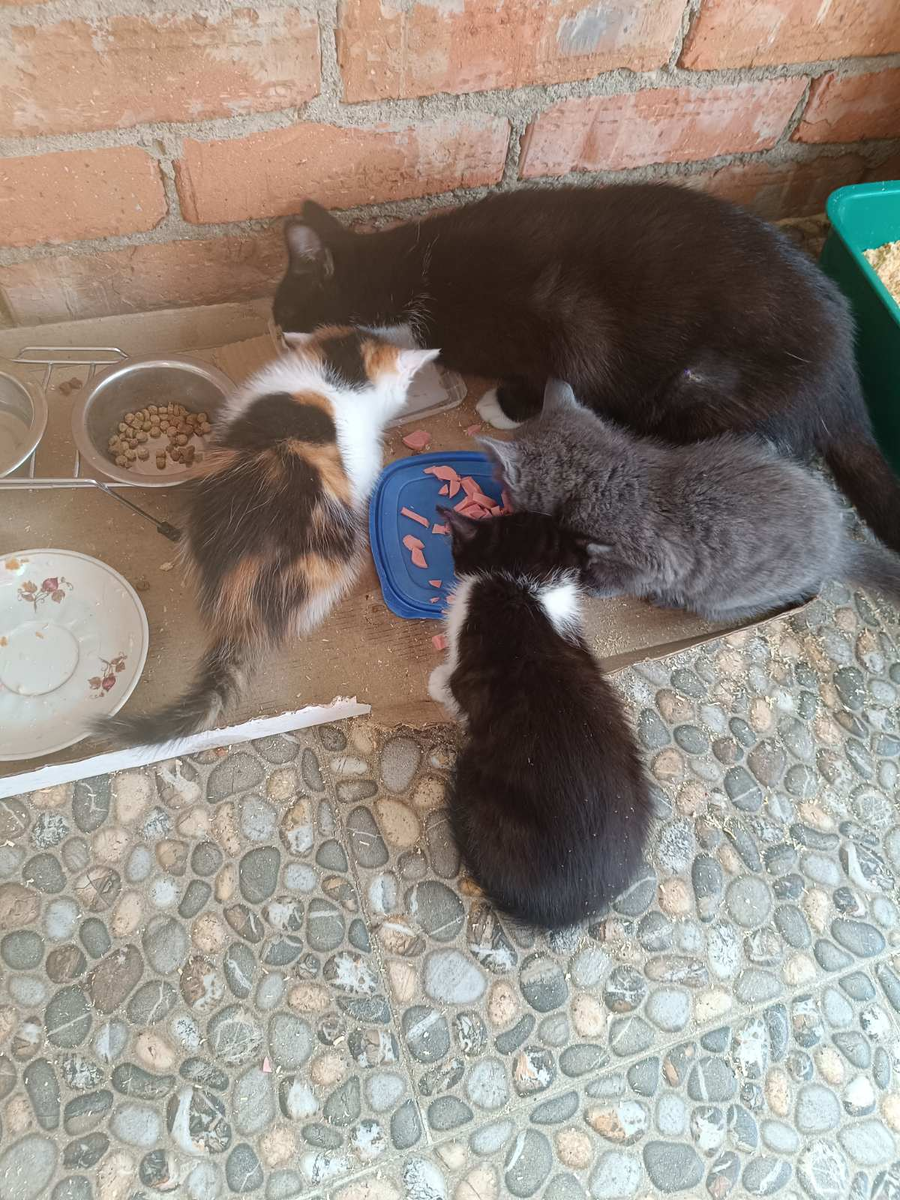 "Нет их! Ни одного! Я их всех накормил. Вроде легли спать в корзинку. Ограждение поставил, чтоб не вылезли. И пошёл работать.. Вернулся в дом взять кое-что.. Пропали! Все трое! Вылезли из корзинки и...Я уже все уголки облазил. И Василиса бегала по всему околотку. Нет их! Как они перелезли через ограду?..." Расстроенный Василисин "папа" подхватил её подмышку и понёс в летнюю кухню кормить. "Как пропали?! Только -только коробку на террасу занесли. Я в дом зашла руки помыть.. Куда им деться?" - причитала я, идя за ними... ...Дело было дней несколько назад. Мы возили кошачью свою семью в клинику после того, как глазастая их маленькая хозяйка углядела у одного, потом у другого какие -то пятнышки. И со знанием дела поставила диагноз . В клинике диагноз подтвердили и выписали лечение . "Купите в нормальной, не в ветеринарной, аптеке то-то и то-то .И пройдёт." Купили. Приехали домой. Полечили. И чуть отвернулись, пропали котята.... Через пару часов - смотри, пришли! Молоко пьют, все трое!