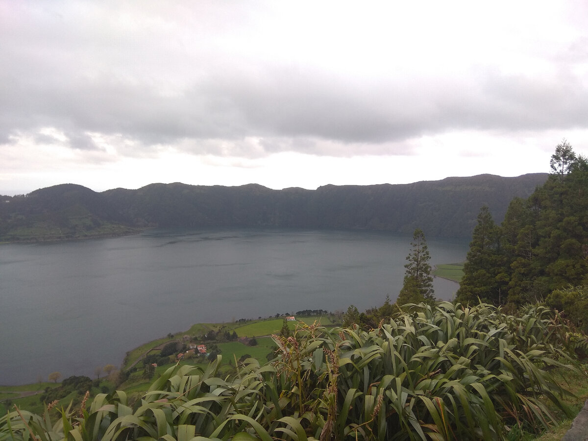 Один из лучших видов на озеро открывается со смотровой площадки Miradouro da Boca do Inferno (N37° 50.576 W25° 45.818).