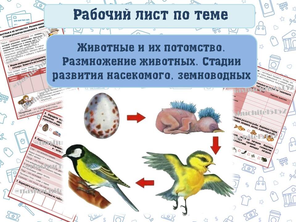 Рабочий лист по теме "Животные и их потомство. Размножение животных. Стадии развития насекомого, земноводных" позволяет ученикам изучить стадии развития животных каждой группы, и с помощью дополнительного материала ( прикреплено к посту) выполнить задания и углубиться в биологию. Рабочий лист можно приобрести по ссылке: https://vk.com/market-216254584?w=product-216254584_13956386%2Fquery
