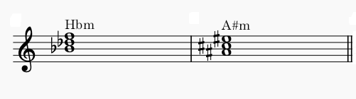 Поэтому желая записать ля диез минор мы вынужденно получим в нотации запись A#-C#-F, что не является трезвучием, а по записи – секстаккорд.