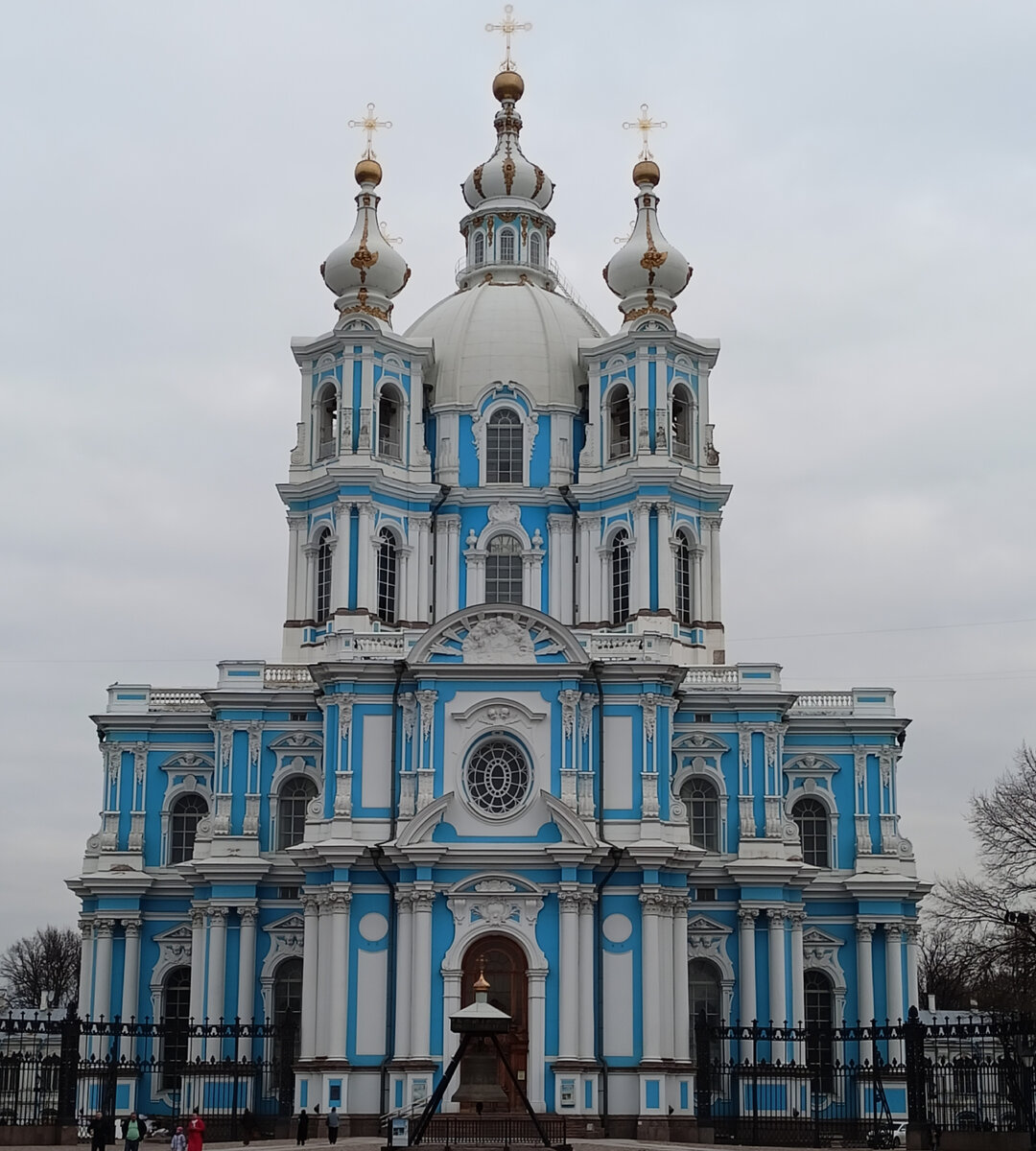Этот красивейший собор, спроектированный в стиле барокко великим итальянским архитектором Бартоломео Франческо Растрелли носит название Воскресенский всех учебных заведений Смольный собор (Воскресения Христова Смольный собор). Строительство было начато в 1748 году по высочайшему указанию императрицы Елизаветы Петровны на месте «Смольного дома» (дворца, в котором она прожила своё детство). Название он получил из-за Смоляного двора, который там когда-то располагался. На нем хранили смолу и варили деготь для работ на Адмиралтейской верфи. Желанием императрицы было построить величественный монастырь, где в тишине и покое она завершит свои дни. В монастырский комплекс должны были войти храм с домовыми церквями и колокольней и институт для девушек из дворянских семей. Изначально был задуман грандиозный проект архитектурного комплекса с 140-метровой колокольней. После нескольких переработок проекта Растрелли высота колокольни в проекте была увеличена до 175 метров. Вначале Собор строили оч