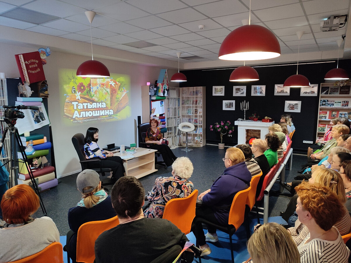 Как вы находите сюжеты для своих книг? Где ищете вдохновение? С кого пишете образы своих героев? Как предпочитаете отдыхать? В продолжении акции Библионочь-2024 на эти и другие многочисленные вопросы ответила мастер современной прозы, романист — Татьяна Алюшина. Читатели библиотеки были рады живому общению с человеком, чьи книги любят и всегда ожидают новые истории. На встрече поговорили о творчестве и профессии писателя. Татьяна Алюшина рассказала о себе и о том, как начала писать. Очень интересно было узнать о процессе работы над книгой. Читателей интересовало как рождается сюжет и яркие образы. Конечно же были вопросы и о личной жизни писателя. Беседа прошла в теплой, дружеской атмосфере. Татьяна Алюшина много шутила, делилась историями из своей жизни, легко и непринужденно общалась, покорила всех своим остроумием. Все желающие смогли получить автограф автора.