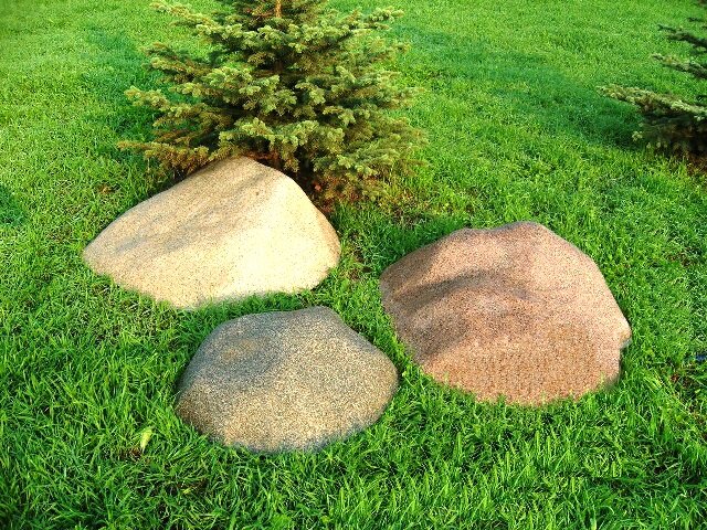 Рулонные газоны выглядят достойно в весенне-летний период, но сделать их еще привлекательнее помогут небольшие хитрости дачников, освоивших процесс оформления личных территорий не хуже дипломированных ландшафтных дизайнеров. В ход идут садовые скамейки, тачки, шезлонги. Но создать действительно необычный травяной ковер помогут камни. При желании их можно найти по дороге на дачу, на заброшенных стройках, приобрести в специализированных магазинах. Камни на газонном покрытии Вариант отличается природной красотой и может использоваться во всех стилях: для лаконичных дизайнов применяют строгие природные элементы с ровными краями; в классических оформлениях украшением станут симпатичные валуны непредсказуемых форм. Пространство около камней заполняют мелкой щебенкой или цветочными клумбами. Иногда рядом формируют небольшой пруд. В качестве камней особенно привлекательного смотрятся: При создании каменных композиций нет строгих правил и принятых норм, так что владельцы участков