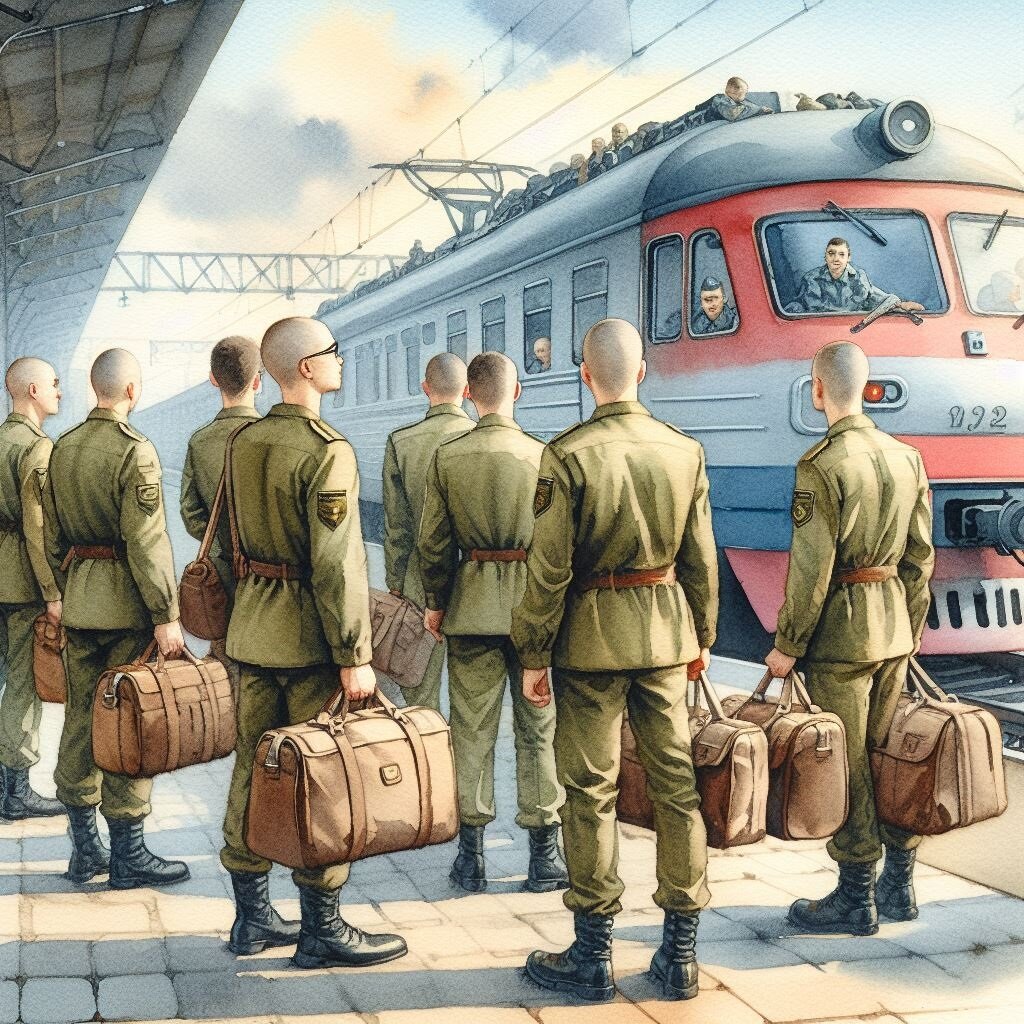 Холодный ветер хлестал по лицу, пробираясь сквозь тонкую куртку. Артем сжимал в руке потёртый рюкзак, его сердце стучало в такт стуку колес поезда, уносящего его из привычного мира. Ещё вчера он сидел в тёплой комнате, укутанный пледом, слушая рассказы о далёких странах и невероятных приключениях. Звёздная пыль оседала на его сапоги, а в голове вились мечты о подвигах и славе. Но сегодня всё было иначе. Серый рассвет окрасил небо в холодные тона, а впереди маячила неизвестность. На рукаве его куртки красовался нашитый ромб с цифрой - его группа крови, его порядковый номер. Артем не хотел войны. Он мечтал о мирной жизни, о тихом семейном счастье. Но судьба распорядилась иначе. В вагоне поезда он был не один. Десятки молодых парней, таких же растерянных и испуганных, ехали навстречу своей судьбе. В их глазах читался страх, но и решимость. Они знали, что впереди их ждёт бой, возможно, последний. Артем стиснул зубы. Он не хотел умирать, но готов был защищать свою Родину, свой дом, свою лю