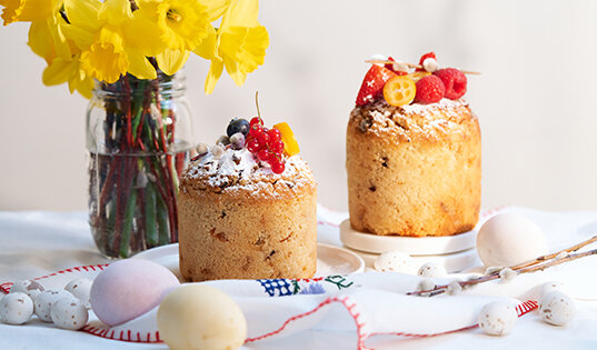 Ягоды вяленые/ сухофрукты 60-70 г (заказать все продукты для приготовления в 1 клик) Как приготовить: 1. Подготовьте все ингредиенты. Разогрейте духовку до 180 градусов. 2. Смешайте йогурт, яйца, масло, эритрит и щепотку соли до однородной консистенции. 3. Смешайте миндальную муку с разрыхлителем, добавьте в жидкую смесь, перемешайте до однородной консистенции без комочков. 4. Порежьте сухофрукты, цукаты, вяленые ягоды (смешивайте на ваш вкус). 5. Вмешайте в тесто ягоды, цукаты и сухофрукты. Разложите тесто по формочкам для куличей и выпек