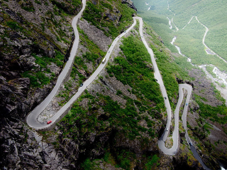 Лестница Троллей, также известная как Дорога Троллей (в оригинале Trollstigen), представляет собой захватывающий горный маршрут в Норвегии. Это одна из самых живописных дорог страны, являющаяся частью национального маршрута №63, который связывает города Онделснес в коммуне Раума и Валлдален в муниципалитете Нордал. Этот участок дороги, известный своей извилистостью и крутыми подъемами, предлагает незабываемые виды на окружающие горы и фьорды. На протяжении всего пути водители могут наслаждаться красотами норвежской природы, включая водопады, зеленые долины и величественные горные вершины. Несмотря на то, что Дорога Троллей может показаться сложной для прохождения, она хорошо оборудована и безопасна для путешественников. Вдоль дороги установлены специальные ограждения и предупредительные знаки, а также есть места для отдыха и смотровые площадки, где можно сделать потрясающие фотографии. Лестница Троллей привлекает множество туристов со всего мира благодаря своей уникальности и красоте.