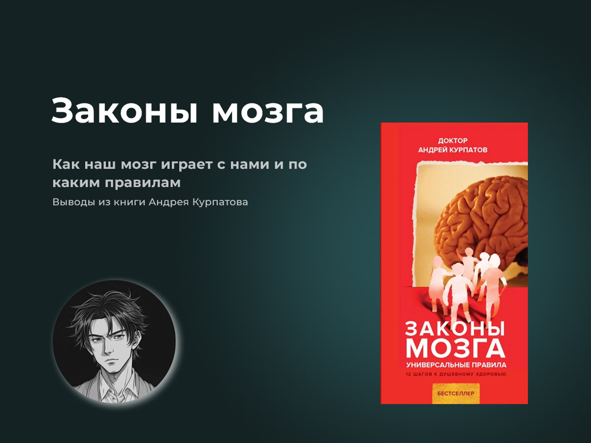 Андрей Курпатов в своей книге «Законы мозга» описал, что происходит с нашим мозгом в разных ситуациях, почему мы иногда принимаем некоторые решения, силу привычного поведения, как наши потребности могут буквально управлять нашими мыслями.