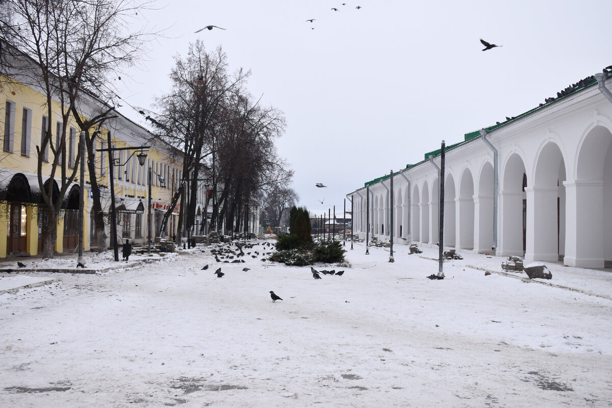 Сели в переполненный автобус, но поездка была недолгой, через 1.5 часа мы уже приехали в еще один древний город Ростов Великий. На ночлег остановились в отеле "Русское подворье". Этот небольшой уютный отель находится у стен древнего ростовского кремля. Номер тоже небольшой и уютный за 2700руб с завтраком. Мы, бросив рюкзаки, сразу пошли в ресторан отеля. Удивительно, но небольшой ресторан, стилизованный под русскую деревню, был почти полон, сегодня суббота и подъехали туристы из Москвы. Повод у нас приятный, сегодня 25 ноября и у моей спутницы день рождения. Она заказала "поляну", а мое дело поздравлять именинницу, что я и делала весь вечер. Мы откушали вкуснейшие блюда русской кухни и выпили коньяка. Вобщем, посидели замечательно и пошли отдыхать в номер. Утром, плотно позавтракав в ресторане, мы оставили рюкзаки в камере хранения отеля и сразу пошли знакомиться с городом. Рядом с отелем мы увидели каменные постройки старых торговых рядов, в них разместились многочисленные сувенирные лавки.