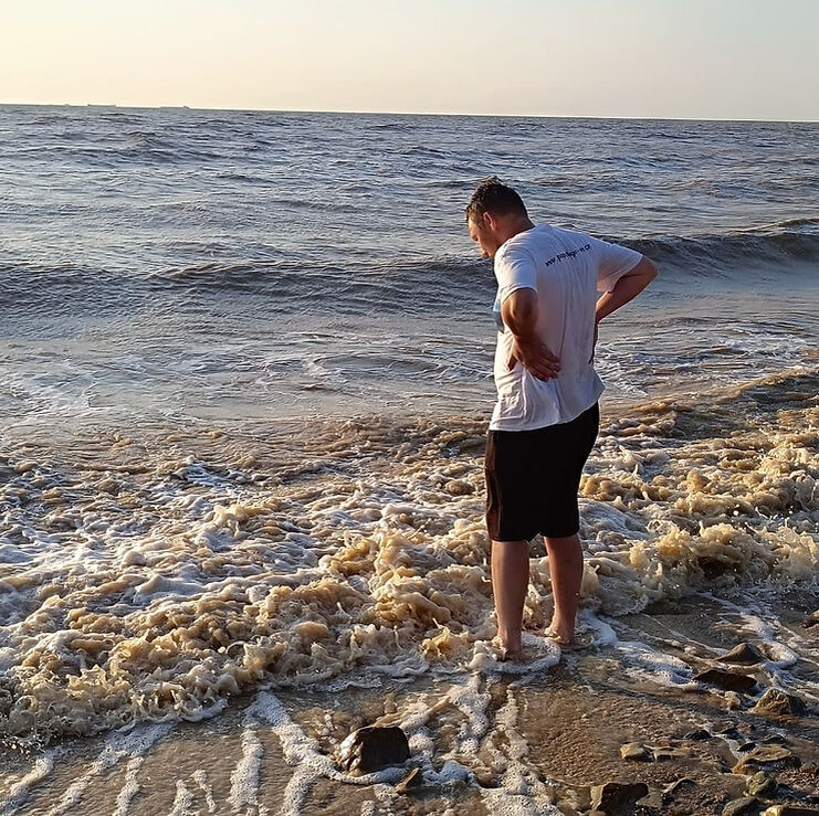 Въехав в город, созвонившись с хозяйкой, мы закинули вещи в квартиру и отправились пешком на пляж. Он рядом. Заблудиться в Ейске нереально - любой случайный прохожий подскажет направление. Но почему-то все отдыхающие шли нам навстречу. Ну и хорошо, толкучки не будет. Мы спустились к воде. Погода в который раз устроила нам сюрприз. Не то чтобы заштормило, но вечерний бриз поднялся сильный, и сколько я ни пытался отплыть от берега хотя бы метров на десять, меня тут же вышвыривало волнами на камни. Не принимает меня море. У нас взаимная антипатия). А я ведь всего лишь хотел поностальгировать и разочек искупаться. Так-то мне это удалось, но весь вечер я проходил покрытый тонким слоем песка. А вообще на пляже скучно. Сами не понимая, что мы тут забыли, мы пошли гулять по набережной. Ничего интересного по пути не встретилось - банальные туристические объекты типа раскрашенных машин, статуэточек, поедающих ноги рыбок и памятников. В данном случае здесь пользуется большим спросом памятник варе