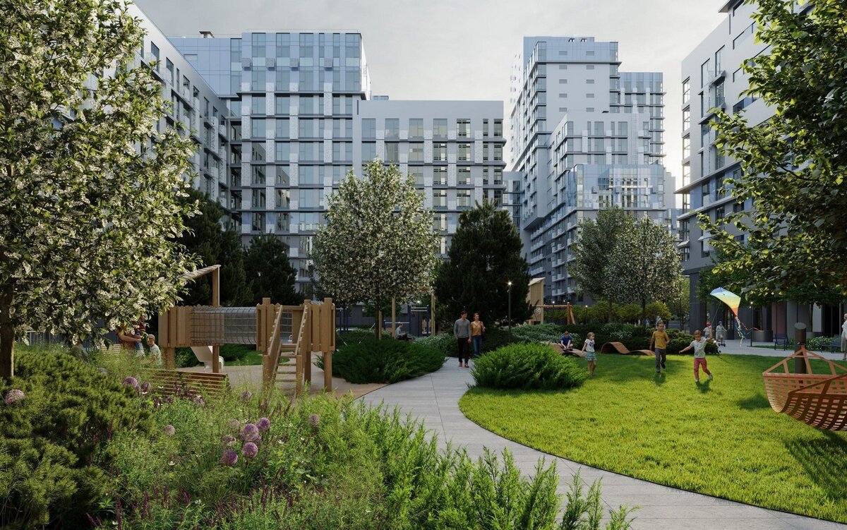На территории комплекса вы найдете настоящие природные оазисы, созданные специалистами бюро VIEWGA, с балансом общественных и уединенных пространств. Внутренние дворы комплекса представляют собой разноуровневое пространство с игровыми зонами для детей, спортивными площадками, зонами отдыха и прогулок.