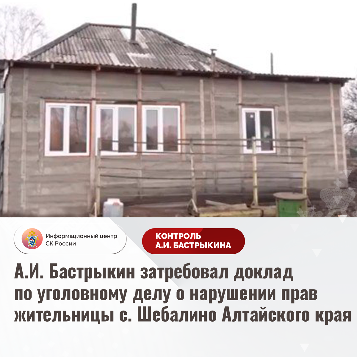 #СледственныйКомитет #СКРоссии #СКР #ИЦСКР #Информационныйцентр #АлександрБастрыкин #ПредседательСКР #КонтрольПредседателяСКР #КомментарийКонтроль #АлтайскийКрай