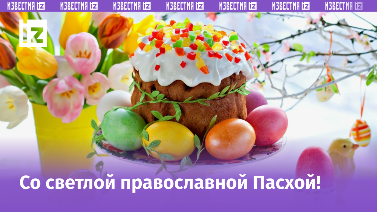 В этом году христиане восточного обряда отмечают Пасху 20 апреля — это главный праздник верующих, посвященный чуду воскрешения Иисуса Христа. К этому событию верующие готовятся, соблюдая пост и посещая храмы, чтобы очистить от греховных помыслов и тело, и душу. На Светлую Пасху принято украшать праздничный стол куличами, творожными пасхами и крашеными яйцами, которые являются символическим напоминанием о воскресении и вечной жизни. «Известия» подготовили красивые открытки и душевные поздравления со Светлой Пасхой. Поздравляю со светлым и радостным Воскресением Христовым! Желаю доброго здоровья, чистых мыслей, ясного ума, крепкой веры и искренней молитвы. Пусть ангел-хранитель держит Вас незримо за руку и ведет правильным путем! Христос Воскрес! Христос Воскрес! Поздравляю с Пасхой и от души желаю надеяться, мечтать, творить добро, верить во всё хорошее, дарить окружающим любовь и получать в ответ искренность. Желаю мира и счастья в этом мире. Христос Воскрес! Желаю в этот светлый празд