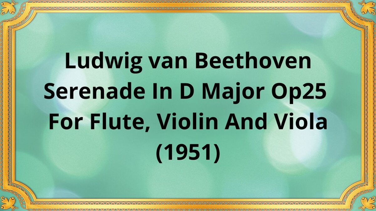 «Серенада Людвига ван Бетховена ре мажор, соч. 25 для флейты, скрипки и альта» — замечательное произведение камерной музыки, написанное культовым Людвигом ван Бетховеном. Эта серенада, написанная в 1801 году, является свидетельством мастерства Бетховена в использовании классических форм и его способности к инновациям в рамках ограничений традиционных структур. Произведение написано для флейты, скрипки и альта, что делает его восхитительной демонстрацией взаимодействия этих трех инструментов.