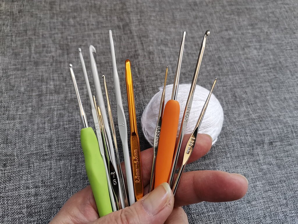 Крючки для вязания делают из разных материалов: металла, пластмассы, дерева, кости. Для разных видов пряжи используют крючки разной толщины или, как ещё называют, разных номеров. Толстыми крючками вяжут вещи из шерстяной или хлопчатобумажной пряжи, тонкие применяют для вязания ажурных вещей из тонких ниток.