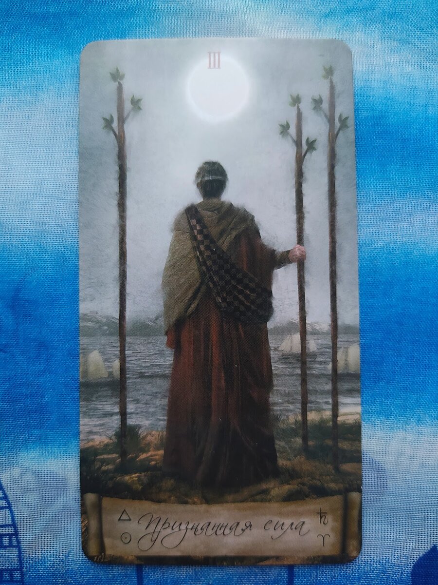 Приветствую всех на моём канале. Сегодня мы рассмотрим следующую карту и узнаем, какие энергии будут сопровождать нас в течение этого вторника - 23 апреля. Карта "3 Жезлов" из колоды Таро "Небо и Земля" является символом расширения горизонтов, ожидания и планирования будущего. На этой карте изображен человек, стоящий на вершине холма у берега моря. Он глядит вдаль на пейзаж простирающийся перед ним и корабли, проходящие мимо. Он обозревает широкие просторы, что символизирует взгляд в будущее и ожидание прибытия своих кораблей. Этот человек полон решимости и готовности к действию. Он уже сделал первые шаги к достижению своих целей и теперь ждёт результатов своих начинаний. Это время ожидания не пассивно; оно требует понимания того, что подготовительная работа выполнена, и теперь наступил момент решительных действий, как только представится возможность. "3 Жезлов" говорит о важности навыка видеть перспективы и умения ждать. Это напоминание о том, что успех часто требует терпения и увере