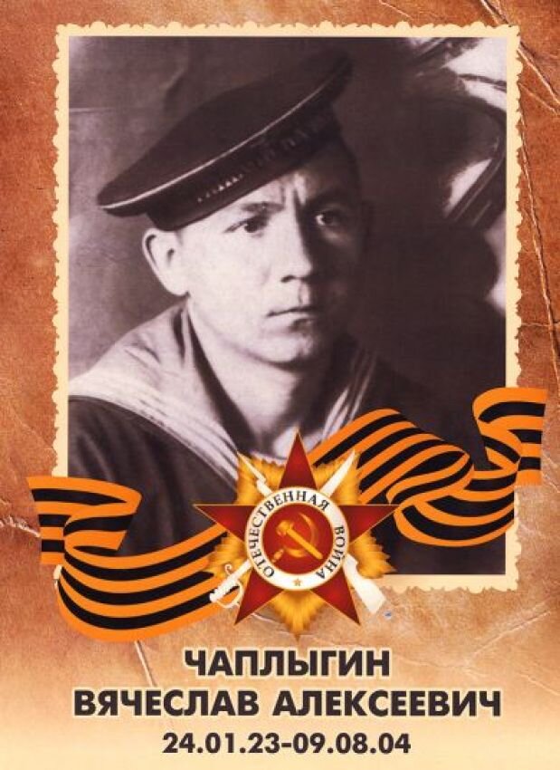 Чаплыгин Вячеслав Алексеевич, род. 24.01.1923, Курская обл., п. Фатеж, был призван в Советскую армию в 1943 г. Служил на Черноморском флоте на катере «малый охотник» матросом-мотористом, недолго служил на эсминце «Бодрый». Демобилизовался в 1948 г. Орден Отечественной войны II степени.