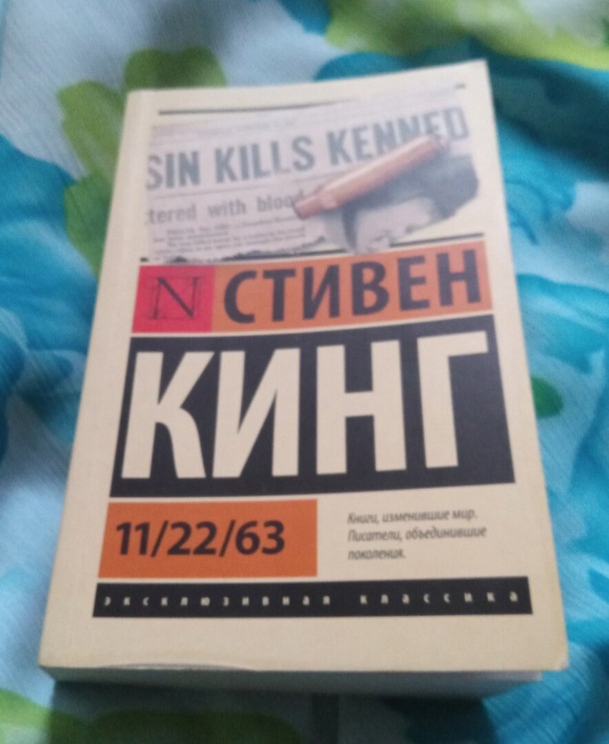 Предыстория такова, давно я хотела прочитать Стивена Кинга и один из его знаменитых романов "11/22/63". Но регулярно что-то да вмешивалось в мои планы. Вселенная будто отодвигала это прочтение. В библиотеке было два экземпляра, но их регулярно читали, ммм, люди ведущие не здоровый образ жизни. Эти книги так воняли, вы даже не представляете!! Девчонки пытались их отмыть и продезинфицировать. но это не помогало. Только соберусь купить эту книгу, бац! И его нет в продаже. Зная мои мучения, мне подарили эту книгу на какой-то праздник. Фото, кстати, получилось классное, уж не знаю, как вам! Книга как-бы в тумане-дымке прошлого. Думаю, что вы знаете о чём роман. Американскому учителю Джейку Эппингу неожиданно предоставилась возможность попасть в прошлое, непосредственно в 1958 год. Его друг нашел временной портал "кроличью нору" у себя в вагончике. И тот же друг уговаривает его попытаться предотвратить убийство Кеннеди, которое произойдет в 1963 году. Если убийство не произойдёт, то буду