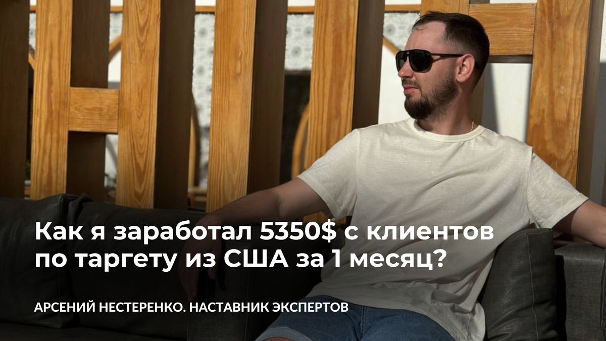 Всем привет! Меня зовут Арсений и я таргетолог который работает с клиентами из США уже 3 года🇺🇸 И прежде чем мы продолжим, хочу сказать, Лучше всего о человеке свидетельствуют его достижения, а не список званий и наград на сайте или в презентации. Однако для ясности: - Действующий таргетолог с опытом более 7 лет - Более 100 успешных клиентов - Более 50 разных ниш в разных странах - Сделал клиенту более 20,000$ чистой прибыли за 1 месяц работы в США - Работаю 2-4 часа в день за счет выстроенной системы - Единовременно веду 12-15 клиентов в месяц без работы 24/7 - Постоянно прохожу топовые обучения по маркетингу А до того, как я расскажу более подробно, что я сделал, чтобы заработать 5350$ за месяц, я приведу немного статистики. Более 80% таргетологов не запускают таргет на свои услуги. А те, кто и запускают, вкладывают не более 500$ в рекламу. И, как следствие, у них нет клиентов, они работают за низкий чек и не растут в доход. 2/3 опрошенных мной зарабатывают не более 2000$🙈