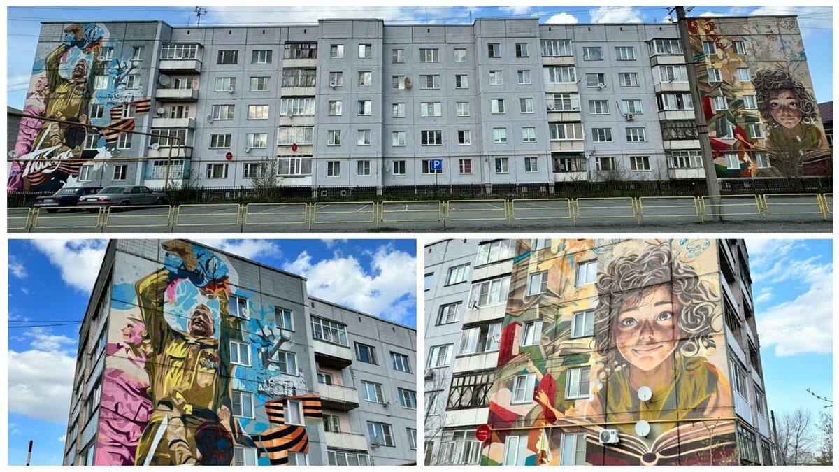 Огромные рисунки появились на фасаде пятиэтажного дома в селе Кунашак. Одну часть стены дома №115 на улице Ленина украсил рисунок, посвященный детям. Художники изобразили ребенка с открытой книгой. Тема выбрана неспроста — рядом расположены детский сад и школа. Напротив пятиэтажки также находится памятник воинам, павшим в годы Великой Отечественной войны (комплекс «Скорбящей матери»), что определило сюжет второй картины. На противоположной стороне дома появилось граффити в честь Великой Победы. В администрации района отметили, что тем самым создается единое пространство с мемориальным комплексом. «Наконец-то сбылась мечта! Администрация района выражает огромную благодарность нашему земляку, уроженцу деревни Карагайкуль, а ныне предпринимателю из Озерска Равилю Агзамовичу Юлдашеву за финансовую поддержку проекта, также выражаем благодарность за содействие Танзиле Идрисовне Гималовой, нашей землячке, жительнице села Кунашак!», написал на своих страницах в соцсетях глава Кунашакского райо