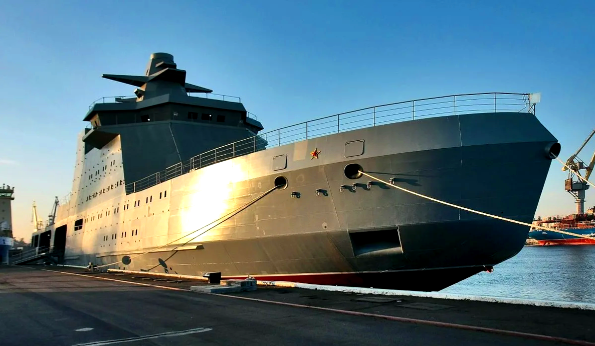 Помимо этого корабль также имеет современное вооружение. Так, на нем установлена АК-176МА, 8 ПЗРК. Кроме этого, есть площадка для базирования многоцелевого вертолета, а также специализированный ангар для беспилотных летательных аппаратов.