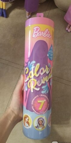 Собственно, а почему мне захотелось рассказать о своих ревилках? Да все просто. По сути именно с этих простых игровых кукляшек я и поняла, что меня затянуло в этот красивый мир пластиковых человечков. Случилось это в марте 2020 года. Когда в продаже появились они - эти яркие колбы с надписью Barbie Color Reveal. У меня тогда дома обитали всего пара простых оригинальных Барби, а дочка увлекалась шариками L.O.L. Тема подобных сюрпризов очень понравилась мне, но хотелось чего-то помасштабнее маленьких пупсиков. Появлялись Hairdorables, еще какие-то мало популярные куклы. Но все чего-то не хватало (корыта, наверное 😅). И вот: появились эти разноцветные колбы сначала в ТВ-рекламе, потом и в магазинах. И я поняла: это то, чего давно хотелось. Большая кукла, да еще и Барби, и в формате сюрприза - берем, хватаем, несем домой и смотрим. Сразу прошу прощения за качество некоторых фото, потому что сделаны они были давненько, пара телефонов уже сменилось с тех пор, и пришлось обращаться к другому известному ресурсу, на котором я писала отзывы про этих кукол и брать оттуда свои же фотографии (может, даже и воровать 🤦♀️). Вот первая такая колба.